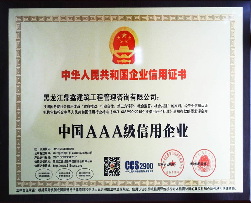 中國(guó)AAA級(jí)信用企業(yè)證書(shū)